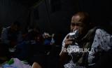 Pengungsi membuat kopi di food truck Dompet Dhuafa di posko pengungsian Taman Prawatasari, Cianjur, Jawa Barat, Selasa (22/11/2022). Gubernur Jawa Barat Ridwan Kamil mengatakan sebanyak 14 posko pengungsian disediakan untuk memfasilitasi 13.784 pengungsi yang terdampak gempa berkekuatan 5,6 SR di Cianjur. Republika/Putra M. Akbar (FOTO : Republika/Putra M. Akbar)