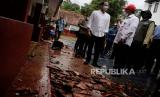 REPUBLIKA.CO.ID, CIANJUR -- Menteri Pendidikan, Kebudayaan, Riset dan Teknologi Nadiem Makarim (kedua kanan) melihat sekolah rusak di Cugenang, Cianjur, Jawa Barat, Rabu (23/11/2022). Kunjungan itu untuk meninjau sekolah yang rusak akibat gempa berkekuatan 5,6 SR di wilayah Kabupaten Cianjur.