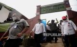Menteri Pendidikan, Kebudayaan, Riset dan Teknologi Nadiem Makarim (kiri) melihat sekolah rusak di Cugenang, Cianjur, Jawa Barat, Rabu (23/11/2022). Kunjungan itu untuk meninjau sekolah yang rusak akibat gempa berkekuatan 5,6 SR di wilayah Kabupaten Cianjur. (FOTO : Republika/Putra M. Akbar)