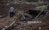 Petugas kepolisian melintas di dekat kendaraan yang tertimbun tanah longsor di Cijedil, Kecamatan Cugenang, Kabupaten Cianjur, Rabu (23/11/2022). Berdasarkan keterangan petugas, hingga pukul 15.00 WIB diperkirakan masih ada 7 korban yang berlum ditemukan di area tersebut. Republika/Abdan Syakura (FOTO : ABDAN SYAKURA/REPUBLIKA)