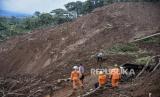 Petugas SAR gabungan melakukan pencarian korban tanah longsor akibat gempa bumi di Cijedil, Kecamatan Cugenang, Kabupaten Cianjur, Rabu (23/11/2022). Berdasarkan keterangan petugas, hingga pukul 15.00 WIB diperkirakan masih ada 7 korban yang berlum ditemukan di area tersebut. Republika/Abdan Syakura (FOTO : ABDAN SYAKURA/REPUBLIKA)