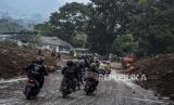 Sejumlah kendaraan melintas di area pencarian korban tanah longsor akibat gempa bumi di Jalan Nasional, Cijedil, Kecamatan Cugenang, Kabupaten Cianjur, Rabu (23/11/2022). Berdasarkan keterangan petugas, hingga pukul 15.00 WIB diperkirakan masih ada 7 korban yang berlum ditemukan di area tersebut. Republika/Abdan Syakura (FOTO : ABDAN SYAKURA/REPUBLIKA)