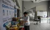 Pengurus DKM menata bantuan logistik untuk warga terdampak gempa bumi di Masjid Pusdai, Kota Bandung, Jumat (25/11/2022). Sholat ghaib serta donasi penggalangan dana itu untuk mendoakan dan membantu korban bencana gempa bumi di Kabupaten Cianjur sekaligus bentuk kepedulian terhadap sesama. Republika/Abdan Syakura (FOTO : ABDAN SYAKURA/REPUBLIKA)