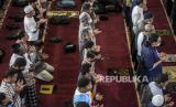 Sejumlah anak berdoa bersama usai melaksanakan sholat ghaib di Masjid Pusdai, Kota Bandung, Jumat (25/11/2022). Sholat ghaib serta donasi penggalangan dana itu untuk mendoakan dan membantu korban bencana gempa bumi di Kabupaten Cianjur sekaligus bentuk kepedulian terhadap sesama. Republika/Abdan Syakura (FOTO : ABDAN SYAKURA/REPUBLIKA)