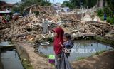 REPUBLIKA.CO.ID,CIANJUR -- Pengungsi berjalan di antara bangunan yang roboh akibat gempa di Desa Gasol, Kecamatan Cugenang, Kabupaten Cianjur, Jawa Barat, Jumat (25/11/2022).