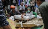 REPUBLIKA.CO.ID,CIANJUR -- Aksi para relawan saat mengevakuasi jenazah korban gempa bumi Cianjur, Jumat (25/11/2022).