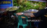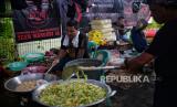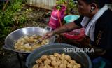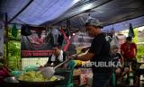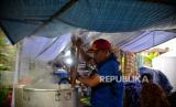 Relawan menyiapkan hidangan makan malam untuk pemgungsi korban gempa Cianjur di posko relawan Kecamatan Cugenang, Kabupaten Cianjur, Jawa Barat, Jumat (25/11/2022). Dalam satu hari mereka mendistribusikan makanan sebanyak 3000 porsi yang dibagikan ke beberapa titik posko pengungsi di Kecamatan Cugenang. Republika/Thoudy Badai (FOTO : Republika/Thoudy Badai)