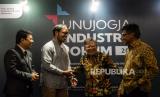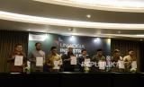 REPUBLIKA.CO.ID,JAKARTA -- CEO ALAMI Group Dima Djani (kedua kiri) berbincang dengan Rektor Universitas Nahdlatul Ulama Yogyakarta Widya Priyahita Pudjibudojo (kiri) Bendahara PBNU Sumantri Suwarno (kedua kanan) dan Ketua Lembaga Pendidikan Tinggi PBNU Ainun Naim (kanan) usai penandatanganan kerja sama pada acara UNU Jogja Industry Forum di Jakarta, Jumat (25/11/2022).