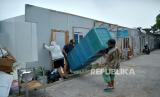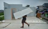 Warga membawa barang dari rumahnya yang terdampak angin puting beliung di Kawasan Jelambar, Grogol Petamburan, Jakarta, Ahad (27/11/2022). Dampak angin puting beliung yang menerjang daerah tersebut mengakibatkan 16 unit kontrakan semi permanen rusak dan sebanyak 68 jiwa harus mengungsi. Tidak ada korban jiwa dalam persistiwa yang terjadi pada Sabtu (26/11/2022) pukul 14.30 tersebut. (FOTO : Republika/Prayogi)