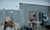 Warga berada di rumahnya yang terdampak angin puting beliung di Kawasan Jelambar, Grogol Petamburan, Jakarta, Ahad (27/11/2022). Dampak angin puting beliung yang menerjang daerah tersebut mengakibatkan 16 unit kontrakan semi permanen rusak dan sebanyak 68 jiwa harus mengungsi. Tidak ada korban jiwa dalam persistiwa yang terjadi pada Sabtu (26/11/2022) pukul 14.30 tersebut. Republika/Prayogi (FOTO : Republika/Prayogi)