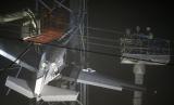 Responden pertama bekerja untuk menyelamatkan penumpang pesawat setelah pesawat kecil itu jatuh dan terjebak di kabel listrik aktif, Senin, 28 November 2022, di Montgomery Village, pinggiran utara Gaithersburg, Md. Kedua penumpang berhasil diselamatkan. (FOTO : AP/Tom Brenner)