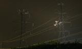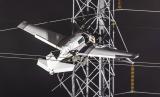 Sebuah pesawat kecil terjebak setelah menabrak kabel listrik, mematikan listrik puluhan ribu penduduk, di Gaithersburg, Maryland, AS, Senin, 28 November 2022. Pilot dan satu penumpang berhasil diselamatkan. (FOTO : EPA-EFE/JIM LO SCALZO)