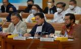 Menteri BUMN Erick Thohir mengikuti Rapat Kerja dengan Komisi VII di kompleks Parlemen Senayan, Jakarta, Selasa (29/11/2022). Raker tersebut beragendakan pengantar musyawarah mengenai Rancangan Undang-Undang Energi Baru dan Energi Terbarukan (RUU EB-ET). Republika/Prayogi (FOTO : Republika/Prayogi)