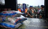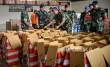Prajurit TNI Angkatan Udara (TNI AU) menyiapkan paket bantuan untuk korban gempa di Posko Satgasduk Operasi Murai Sakti 22 untuk penanggulangan bencana gempa Cianjur di Lanud Atang Sendjaja, Bogor, Jawa Barat, Jumat (2/12/2022). Panglima Komando Operasi Udara (Pangkoopsud) I Marsda TNI Bambang Gunarto menyerahkan bantuan sosial melalui posko Satgasduk Operasi Murai Sakti 22 sebanyak 57 ton berisi paket sembako untuk korban gempa Cianjur. Bantuan tersebut nantinya akan didistribusikan kepada warga terdampak menggunakan jalur udara untuk mempercepat penyaluran bantuan juga mampu mengakses wilayah yang terisolir. Republika/Thoudy Badai (FOTO : Republika/Thoudy Badai)