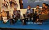 Marketing Director Agung Podomoro Land Tbk. Agung Wirajaya (tengah), Chief Marketing Officer Bukit Podomoro Jakarta Zaldy Wihardja (kiri kedua), Presiden Direktur PT ERA Indonesia Darmadi Darmawangsa (kanan kedua), Kepala Ekonom PT Bank Central Asia Tbk (BCA) David E. Sumual (kanan), dan CEO & Founder Finante Rista Zwestika (kiri) dalam diskusi publik “Optimisme Ekonomi dan Sektor Properti dalam Menatap 2023” di Hotel The Westin Jakarta, (FOTO : dok)