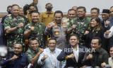 Kepala Staf TNI Angkatan Laut (KSAL) Laksamana Yudo Margono bersama Kepala Staf Angkatan Darat Jenderal Dudung Abdurachman, Kepala Staf Angkatan Udara Marsekal TNI Fadjar Prasetyo, Kapolri Jenderal Listyo Sigit prabowo dan Ketua Komisi I DPR Meutya Viada Hafid usai mengikuti uji kelayakan dan kepatutan calon Panglima TNI di Kompleks Parlemen, Senayan, Jakarta, Jumat (2/12/2022). Rapat internal Komisi I DPR menyetujui Laksamana Yudo Margono sebagai Panglima TNI menggantikan Jenderal Andika Perkasa, setelah yang bersangkutan menjalani rangkaian uji kelayakan dan kepatutan. (FOTO : Republika)