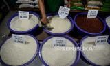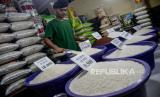 REPUBLIKA.CO.ID, Pedagang menata beras di kawasan Simprug, Jakarta, Jumat (2/12/2022). Badan Pusat statistik menyatakan stok beras surplus 1,7 juta ton dan cukup untuk memenuhi kebutuhan nasional.