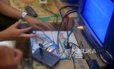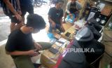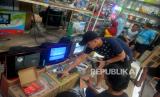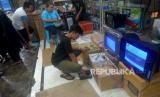 REPUBLIKA.CO.ID, YOGYAKARTA -- Pegawai toko membantu menyeting set top box (STB) di Pelangi Elektronik, Yogyakarta, Ahad (4/12/2022). Warga di Yogyakarta berburu STB imbas Pemerintah mematikan siaran tv analog sejak Jumat (2/12/2022) pukul 24.00 WIB. Beberapa toko elektronik kehabisan STB dan harga juga melonjak hampir dua kali lipat.
