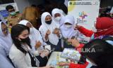 Pengunjung mengikuti kuis tentang pencegahan korupsi di Pameran Pelayanan Publik saat Peringatan Hari Antikorupsi Sedunia (Hakordia) 2022 yang digelar Komisi Pemberantasan Korupsi (KPK) di Plaza Gedung Sate, Kota Bandung, Senin (5/12/2022). Tema Hakordia tahun ini yaitu Indonesia Pulih, Bersatu Berantas Korupsi. Acara diisi berbagai kegiatan di antaranya seminar, diskusi, dan edukasi terkait pencegahan korupsi. Kegiatan berlangsung 5-6 Desember 2022. Republika/Edi Yusuf (FOTO : Edi Yusuf/Republika)