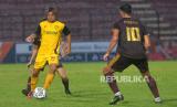 REPUBLIKA.CO.ID,YOGYAKARTA -- Penyerang Persikabo 1973 Gustavo dihadang dua pemain PSM Makassar pada pertandingan lanjutan BRI Liga 1 di Stadion Sultan Agung, Bantul, Yogyakarta, Senin (5/12/2022).