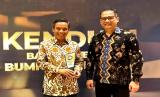Wakil Direktur Utama Bank BTN Nixon LP Napitupulu (kiri) saat menerima penghargaan BUMN Berprestasi kategori BUMN Penggerak Ekonomi Bangsa di Jakarta, Ahad (4/12) malam. (FOTO : Dok. BTN)