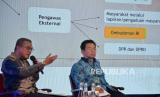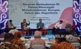 Anggota Ombudsman RI Indraza Marzuki Rais (kiri) dan Pimpinan Komisi Pemberantasan Korupsi (KPK) Johanis Tanak menyampaikan pemaparan saat Seminar Nasional Menciptakan Layanan Publik Bebas Korupsi saat Hari Antikorupsi Sedunia (Hakordia) yang digelar KPK, di Aula Barat, Gedung Sate, Kota Bandung (6/12/2022). Dalam upaya pencegahan korupsi, KPK terus mendorong terciptanya tata kelola pemerintahan dan perusahaan yang Clean and Good Governance. (FOTO : Edi Yusuf/Republika)