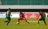 Penyerang sayap Persis Solo, Irfan Bachdim mencoba melewati dua pemain Rans Nusantara FC pada lanjutan pertandingan BRI Liga 1 di Stadion Maguwoharjo, Sleman, Yogyakarta, Selasa (6/12/2022). Pada pertandingan ini Persis Solo berhasil mencukur Rans Nusantara dengan skor 6-1. (FOTO : Republika/Wihdan Hidayat)