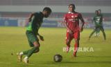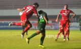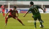 Bek kiri Persis Solo, Abduh Lestaluhu menghadang gelandang Rans Nusantara FC Alfin Tuasalamony pada lanjutan pertandingan BRI Liga 1 di Stadion Maguwoharjo, Sleman, Yogyakarta, Selasa (6/12/2022). Pada pertandingan ini Persis Solo berhasil mencukur Rans Nusantara dengan skor 6-1. (FOTO : Republika/Wihdan Hidayat)