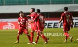 Gelandang Persis Solo, Ryo Matsumura melakukan selebrasi bersama rekannya usai mencetak gol ke gawang Rans Nusantara FC pada lanjutan pertandingan BRI Liga 1 di Stadion Maguwoharjo, Sleman, Yogyakarta, Selasa (6/12/2022). Pada pertandingan ini Persis Solo berhasil mencukur Rans Nusantara dengan skor 6-1. (FOTO : Republika/Wihdan Hidayat)