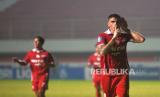 Penyerang Persis Solo, Rodriguez melakukan selebrasi usai mencetak gol ke gawang Rans Nusantara FC pada lanjutan pertandingan BRI Liga 1 di Stadion Maguwoharjo, Sleman, Yogyakarta, Selasa (6/12/2022). Pada pertandingan ini Persis Solo berhasil mencukur Rans Nusantara dengan skor 6-1. (FOTO : Republika/Wihdan Hidayat)