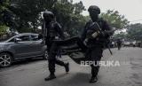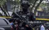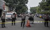 REPUBLIKA.CO.ID, BANDUNG -- Petugas kepolisian berjaga di dekat lokasi terjadinya ledakan yang diduga bom bunuh diri di area Polsek Astana Anyar, Jalan Astana Anyar, Kota Bandung, Rabu (7/12/2022).