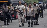 Kapolda Jawa Barat Irjen Pol Suntana (kanan) meninjau lokasi ledakan bom sebelum konferensi pers oleh Kapolri di Area Polsek Astana Anyar, Jalan Astana Anyar, Kota Bandung, Rabu (7/12/2022). Kapolri Jenderal Listyo Sigit Prabowo mengatakan pelaku bom bunuh diri di Polsek Astana Anyar, Kota Bandung terafiliasi jaringan Jamaah Ansharut Daulah (JAD) Jawa Barat. Akibat ledakan itu 11 orang menjadi korban, yakni 10 anggota polri dan seorang warga. (FOTO : ABDAN SYAKURA/REPUBLIKA)