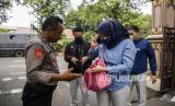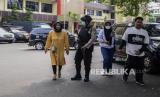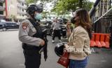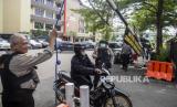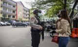 Polisi menanyakan keperluan warga yang mengunjungi Polres Metro Jakarta Selatan di Jakarta, Rabu (7/12/2022). Polres Metro Jakarta Selatan memperketat penjagaan di gerbang masuk pasca ledakan bom bunuh diri di Polsek Astanaanyar, Bandung, Jawa Barat. Republika/Putra M. Akbar (FOTO : Republika/Putra M. Akbar)