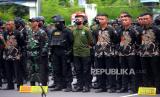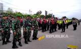 Aparat TNI dan Polri mengikuti apel gelar pasukan dalam rangka pengamanan VVIP di Stadion Maguwoharjo, Sleman, Yogyakarta, Rabu (7/12/2022). Pasukan dari berbagai matra mengikuti apel gelar pasukan dalam rangka pernikahan putera Presiden Joko Widodo, Kaesang Pengarep dengan Erina Gudono pada Sabtu (10/12/2022) mendatang. (FOTO : Republika/Wihdan Hidayat)