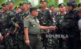 Danrem 072/ Pamungkas, Puji Cahyono memeriksa pasukan saat apel gelar pasukan dalam rangka pengamanan VVIP di Stadion Maguwoharjo, Sleman, Yogyakarta, Rabu (7/12/2022). Pasukan dari berbagai matra mengikuti apel gelar pasukan dalam rangka pernikahan putera Presiden Joko Widodo, Kaesang Pengarep dengan Erina Gudono pada Sabtu (10/12/2022) mendatang. (FOTO : Republika/Wihdan Hidayat)