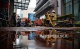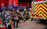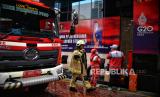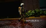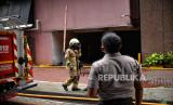 Petugas Damkar usai melakukan proses pendingingan di lokasi terjadi kebakaran di salah satu Gedung di Kompleks Kementerian Hukum dan Hak Asasi Manusia (Kemenkumham), Jakarta, Kamis (8/12/2022). Kebakaran tersebut terjadi di area lantai lima Gedung Kemenkumham sekitar pukul 11.05 WIB. Sementara menurut pihak Kemenkumham, kebakaran terjadi di ruang tempat penyimpanan arsip lama dan barang-barang bekas yang sudah tidak terpakai, meski demikian ia memastikan tidak ada dokumen atau arsip penting yang terbakar dalam peristiwa tersebut. (FOTO : Republika/Thoudy Badai)