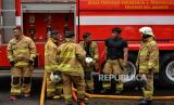 REPUBLIKA.CO.ID, JAKARTA -- Petugas Damkar usai melakukan proses pendingingan di lokasi terjadi kebakaran di salah satu Gedung di Kompleks Kementerian Hukum dan Hak Asasi Manusia (Kemenkumham), Jakarta, Kamis (8/12/2022).