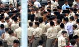 Ketua PP Muhammadiyah Haedar Nashir menghampiri santri Muallimin usai resepsi Milad ke-104 Madrasah Muallimin Muhammadiyah Yogyakarta di Kampus Terpadu Madrasah Muallimin Muhammadiyah Yogyakarta, Sedayu, Bantul, Yogyakarta, Kamis (8/12/2022). Di Milad ke-104 ini Madrasah Muallimin mengusahakan standardisasi untuk menjangkau kualifikasi atau pengakuan internasional dan juga memperkuat sendi-sendi akademik supaya predikat baik dan unggul tidak terlepas dari Madrasah Mu’allimin Muhammadiyah Yogyakarta. Pada tahun ini di usia ke-104 tahun, bersama dengan Madrasah Mu’allimaat Muhammadiyah Yogyakarta, Mu’allimin sudah mendapat izin untuk membuka kelas internasional yang berbasis Cambridge. (FOTO : Republika/Wihdan Hidayat)
