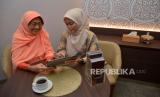 Karyawan PT Bank Muamalat Indonesia Tbk memberikan penjelasan produk kepada nasabah prioritas usai peresmian pembukaan layanan Priority Center di kantor Cabang Buaran, Jakarta, Kamis, (8/12). Priority Center adalah ruangan khusus untuk nasabah prioritas yang memberikan berbagai kemudahan dan kenyamanan transaksi seperti jalur bebas antri, Private Dealing Room, Business Lounge dan Meeting Room. Segmen prioritas merupakan salah satu fokus bisnis perseroan. Saat ini kontribusi segmen prioritas adalah sebesar 25% dari total Dana Pihak Ketiga (DPK) Bank Muamalat. (FOTO : Republika/Prayogi)