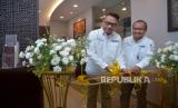 Pelaksana Tugas Direktur Utama PT Bank Muamalat Indonesia Tbk Hery Syafril (kiri) dan Direktur PT Bank Muamalat Indonesia Tbk Wahyu Avianto (kanan) meresmikan layanan Priority Center di kantor Cabang Buaran, Jakarta, Kamis, (8/12). Priority Center adalah ruangan khusus untuk nasabah prioritas yang memberikan berbagai kemudahan dan kenyamanan transaksi seperti jalur bebas antri, Private Dealing Room, Business Lounge dan Meeting Room. Segmen prioritas merupakan salah satu fokus bisnis perseroan. Saat ini kontribusi segmen prioritas adalah sebesar 25% dari total Dana Pihak Ketiga (DPK) Bank Muamalat. (FOTO : Republika/Prayogi)
