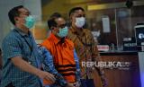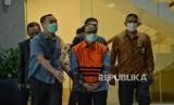 Tersangka Hakim Agung Gazalba Saleh berjalan mengenakan rompi tahanan KPK usai diperiksa di Gedung Merah Putih KPK, Jakarta, Kamis (8/12/2022). KPK melakukan penahanan terhadap Hakim Agung Gazalba Saleh setelah ditetapkan sebagai tersangka dalam perkara dugaan penerimaan suap penanganan perkara di lingkungan Mahkamah Agung yang juga menjerat Hakim Agung Sudrajad Dimyati. Sementara, guna memenuhi kebutuhan penyidikan, KPK melakukan penahanan terhadap Gazalba Saleh selama 20 hari pertama mulai 8-27 Desember 2022 di Rutan KPK Pomdam Jaya Guntur. Republika/Thoudy Badai (FOTO : Republika/Thoudy Badai)
