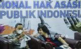 Komisioner Mediasi Prabianto Mukti Wibowo dan Komisioner Pengaduan Hari Kurniawan (kanan) memberikan keterangan pers terkait refleksi penegakan dan pemajuan HAM di Indonesia tahun 2022 di Jakarta, Sabtu (10/12/2022). Sepanjang tahun 2022, Komnas HAM telah menerima 5.306 berkas pengaduan masyarakat terkait dugaan pelanggaran HAM. Dari berkas pengaduan tersebut tiga besar pihak teradu yang ditangani mekanisme pemantauan dan penyelidikan yaitu kepolisian, korporasi dan pemerintah pusat. Serta tiga hak yang banyak dilanggar dalam kasus-kasus tersebut adalah hak untuk memperoleh keadilan, hak atas kesejahteraan dan hak atas rasa aman. Republika/Putra M. Akbar (FOTO : Republika/Putra M. Akbar)