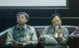 Ketua Komnas HAM Atnike Nova Sigiro (kanan) bersama Wakil Ketua Internal Pramono Ubaid Tanthow berbincang disela menyampaikan keterangan pers terkait refleksi penegakan dan pemajuan HAM di Indonesia tahun 2022 di Jakarta, Sabtu (10/12/2022). Sepanjang tahun 2022, Komnas HAM telah menerima 5.306 berkas pengaduan masyarakat terkait dugaan pelanggaran HAM. Dari berkas pengaduan tersebut tiga besar pihak teradu yang ditangani mekanisme pemantauan dan penyelidikan yaitu kepolisian, korporasi dan pemerintah pusat. Serta tiga hak yang banyak dilanggar dalam kasus-kasus tersebut adalah hak untuk memperoleh keadilan, hak atas kesejahteraan dan hak atas rasa aman. Republika/Putra M. Akbar (FOTO : Republika/Putra M. Akbar)