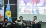 Koordinator Subkomisi Pemajuan HAM Anis Hidayah, Koordinator Subkomisi Penegakan HAM Uli Parulian Sihombing dan Komisioner Pengkajian & Penelitian Saurlin P. Siagian (dari kiri ke kanan) memberikan keterangan pers terkait refleksi penegakan dan pemajuan HAM di Indonesia tahun 2022 di Jakarta, Sabtu (10/12/2022). Sepanjang tahun 2022, Komnas HAM telah menerima 5.306 berkas pengaduan masyarakat terkait dugaan pelanggaran HAM. Dari berkas pengaduan tersebut tiga besar pihak teradu yang ditangani mekanisme pemantauan dan penyelidikan yaitu kepolisian, korporasi dan pemerintah pusat. Serta tiga hak yang banyak dilanggar dalam kasus-kasus tersebut adalah hak untuk memperoleh keadilan, hak atas kesejahteraan dan hak atas rasa aman. Republika/Putra M. Akbar (FOTO : Republika/Putra M. Akbar)