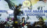REPUBLIKA.CO.ID,JAKARTA -- Ketua Komnas HAM Atnike Nova Sigiro (kedua kanan) bersama Komisioner Pendidikan & Penyulluhan Putu Elvina, Wakil Ketua Internal Pramono Ubaid Tanthowi, Wakil Ketua Eksternal Abdul Haris Semendawai, (dari kiri ke kanan) memberikan keterangan pers terkait refleksi penegakan dan pemajuan HAM di Indonesia tahun 2022 di Jakarta, Sabtu (10/12/2022).