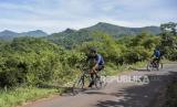 Peserta memacu sepedanya saat mengikuti kegiatan Republik Gobar (Gowes Bareng) Etape 2 di Cilame, Kecamatan Kutawaringin, Kabupaten Bandung, Ahad (11/12/2022). Republika Perwakilan Jawa Barat menggelar kegiatan Republik Gobar Etape 2 yang diikuti oleh sedikitnya 200 pesepeda dari berbagai komunitas sepeda di Jawa Barat. (FOTO : ABDAN SYAKURA/REPUBLIKA)