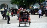 400 becak dan 35 andong disiapkan untuk mengantarkan tamu ke Pura Mangkunegaran..