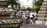 REPUBLIKA.CO.ID,JAKARTA -- Turis asing berkunjung ke kuil Wat Pho, salah satu tempat wisata paling populer di Bangkok, di Bangkok, Thailand, Ahad (11/12/2022).