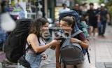 Turis asing tiba di kawasan wisata populer Jalan Khaosan di Bangkok, Thailand, 11 Desember 2022. Otoritas Pariwisata Thailand (TAT) mengumumkan sepuluh juta pengunjung tiba di negara tersebut pada tahun 2022, saat pariwisata mulai pulih setelah pencabutan semua pembatasan COVID-19 tindakan pada bulan Oktober, mencatat pendapatan lebih dari 500 miliar Baht Thailand tahun ini (14,40 miliar dolar AS atau 13,68 miliar euro). (FOTO : EPA-EFE/NARONG SANGNAK)