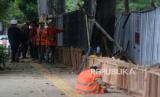 REPUBLIKA.CO.ID, JAKARTA -- Pekerja mengecat pagar yang telah dipasang di Tebet Eco Park, Tebet, Jakarta, Senin (12/12/2022). Pemasangan pagar sepanjang 1.700 meter yang mengelilingi Tebet Eco Park itu untuk meningkatkan kenyamanan pengunjung taman hingga mempermudah kontrol aksesibilitas keluar masuk pengunjung.